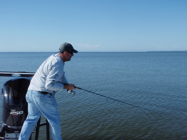 Today, I guided Brad Hasse in lower East Bay and found even more speckled trout and redfish. During this transitional weather and water temps, it seems the fish are still a bit spread out but great numbers are north and south. Started at first light with topwaters to produce huge numbers of speckled trout in the 2-4# range with a few redfish misses. Mullet, bait and slicks everywhere. After passing the area with topwaters, we can through the same area with Gulp! Jerkshads and 3″ Gulp! Shrimp to clean up the rest. Couldn’t count how many trout we caught. The best quality fish were found inside the schools of large mullet and they were rabid. With a limit of trout completed and the sun high, I had a special treat for Brad and went jetted off to a slick, wind protected bank in Escambia Bay. Again, we found huge amounts of mullet and bait in 1-3′ of very clear water. Paralleled the bank and found redfish sitting between the bank and the schools of mullet located about 30′ off the bank. Classic sight fishing session. Found the fish to be extremely receptive to a well-placed Gulp! Jerkshad. We also picked up redfish inside the mullet schools as we looked along the bank. Super morning of Redfish University fishing. Brad took a limit of speckled trout and redfish for a cookout back home. E Holstman