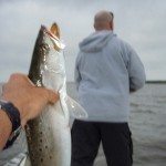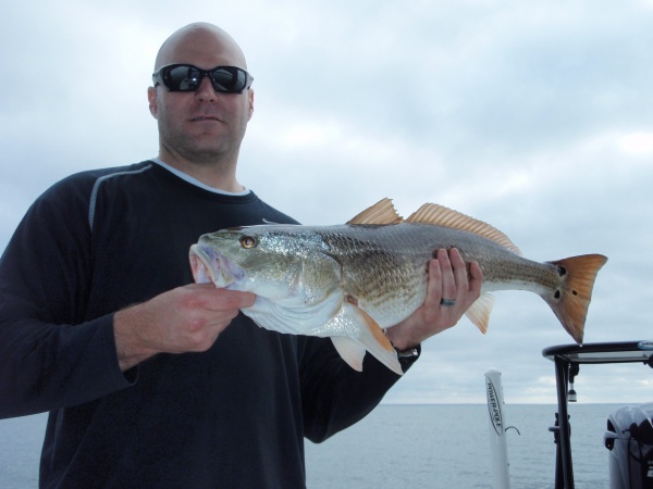 It’s been a bit more challenging lately at Redfish University but we seem to always figure it out and produce great catches of the shallow inshore species. Full moon and high winds can make things tricky but consistently being around large numbers of fish is the key. Guided regulars, Terrance and Rich, this morning for some redfish and speckled trout. Started at first-light with topwaters only to draw a few fish but lots of misses and blowups. Since Pure Fishing acquired Sebile Lures, I have been extremely impressed by these baits. Switched to the Sebile Stick Shadds and absolutely hammered the big trout all morning. Wind blocked banks aren’t always the ticket in windy conditions as we found most of our quality fish on banks being pounded by small swells. After getting lots and lots of trout in the 2-5# range we concentrated on the redfish. Found lots of mullet and minnows and the fish were there. Ended up with some in the 25-30″ range that were taken on Gulp! 5″ Jerkshads. All fish released and back with T and Rich tomorrow for another epic experience at Redfish University. E Holstman